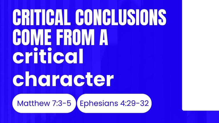 We draw critical conclusions because we have a critical character, when we should take on the character of Jesus. Let me give you one more.